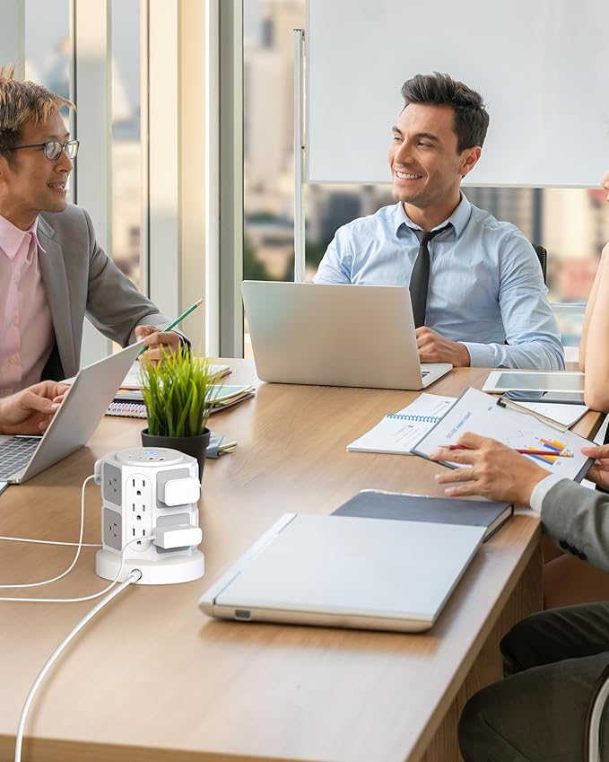 - 【Super Safety Power Strip Tower】The surge protector power strip is built with 2100J surge protection, protecting your devices from power surges caused by lightning strikes. With a 1380℉ flame-retardant casing, circuit breaker switch, and multiple safety features against overload, short-circuit, over-current, over-voltage, and overheating, keep your home and connected devices safe.