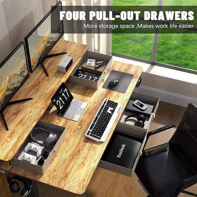 - 😃MORE ERGONOMIC AND MORE WORKSPACE: Widened to 30 Inches, Additional Workspace fully meets the space requirements for working time,Stand up desk with 4 Drawers for desktop organization
