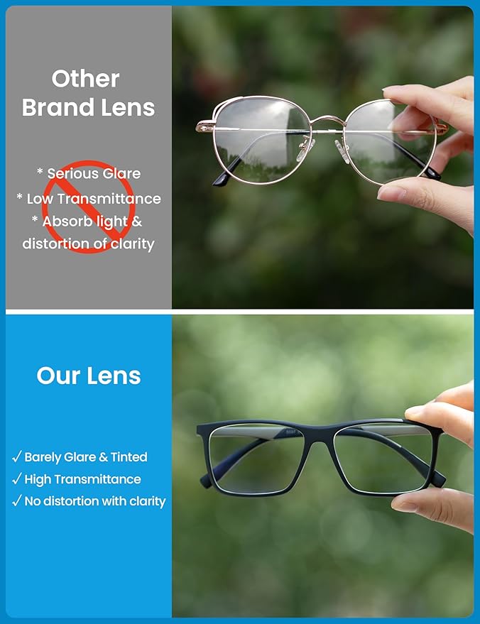 - [Premium Lens] With truly anti-glare technology, offers the newest high-tech lens, barely tinted, and restores the true color. Eminent workmanship and light weight are perfect for male wearers.