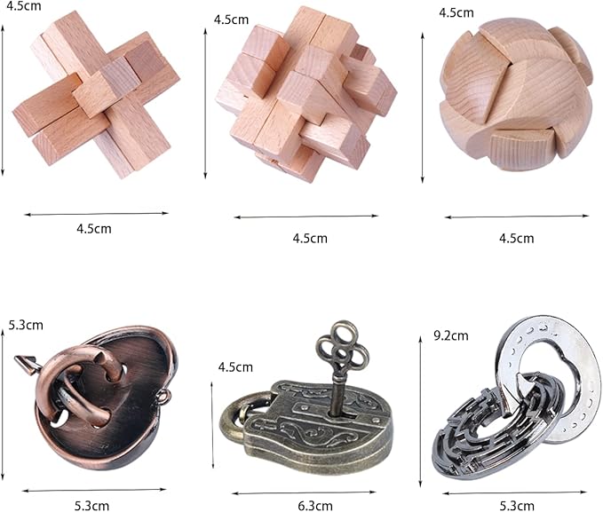 - Metal and Wood Brain Teaser 6 Set for Kids and Adults - All the coils and blocks are smooth and have NO SHARP EDGES for endless play without getting hurt. The links are made from heavy-duty 4.5 stainless steel as well as lightweight and durable beech wood that doesn’t easily bend or break even when thrown or stepped on. Players can’t force them open so there is no chance of cheating. It has also passed the ASTM F963 International Toy Safety Standards and guarantees it’s top-notch quality.