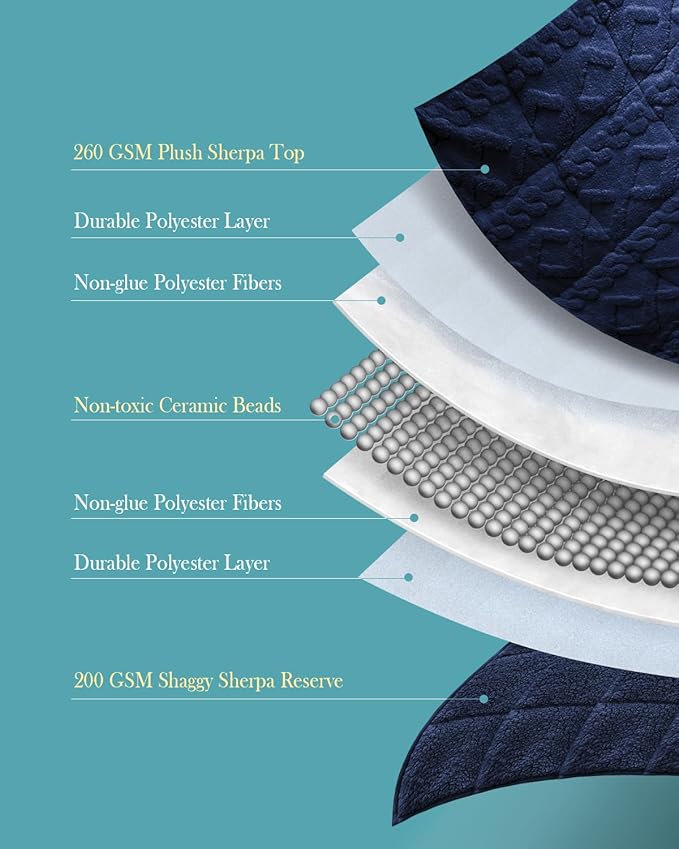 - Reliable 7-Layer Design: Exquisitely crafted through the fusion of multiple innovative techniques, this Sherpa weighted blanket not only embodies integrity and longevity but also delivers a luxurious touch that elevates your home.
