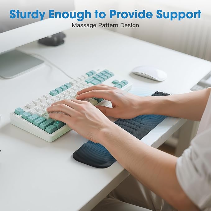 - MASSAGE PATTERN DESIGN: The carpal tunnel keyboard support feature a unique massage pattern design, which helps your hands relax, provide pressure relief and promote blood circulation to your wrists during long hours of computer use