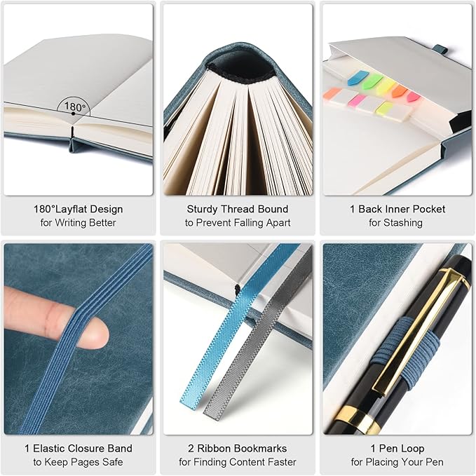 - 【Tough & Stylish Hardcover】Crafted from TOP-NOTCH VEGAN LEATHER with distinctive patterns, which is animal-friendly and boasts a luxurious look. DURABLE hard cover provides superior protection to your pages compared to softcover, while offering a stable writing surface. Featuring an innovative thread-bound binding that allows for easy LAY-FLAT use, catering to both left- and right-handed users.