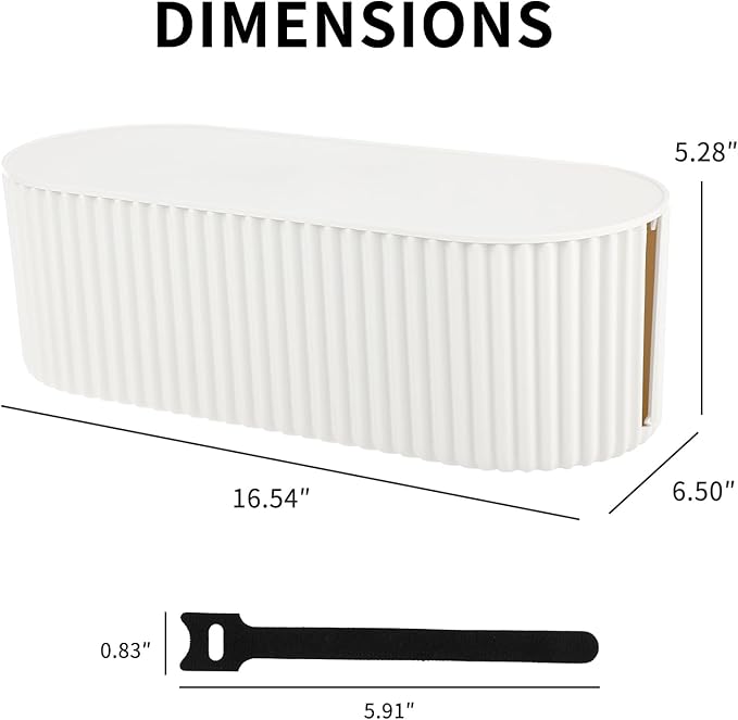 - 【LARGE CAPACITY】: Large size: 16.54”x6.5”x5.28”. Heightened and widened design, general power strips can be accommodated well. Streamlined design which can hides and organizes your cables easily to keep your cables organized and suitable for most wires and cables in your home and office.