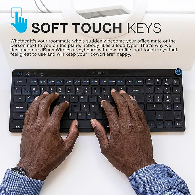 - JBuds Keyboard - COMPACT LAYOUT With 95 keys and an efficient layout, this Bluetooth keyboard has it all. A full numerical pad and set of function keys mean you can easily work hard and play harder. The low profile and smaller desktop footprint makes it look great in your home office and easy to bring on the go.