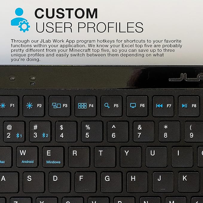 - JBuds Keyboard - CUSTOM USER PROFILES Through our JLab Work App, program hotkeys for shortcuts to your favorite functions within your application.