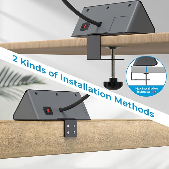 - 【7 IN 1 Desk Clamp Power Strip】Nightstand charging station equipped with 3 AC outlets, 1 PD 20W USB-C port and 3 USB-A ports that can power up 7 devices simultaneously. A great addition to the desk edge.