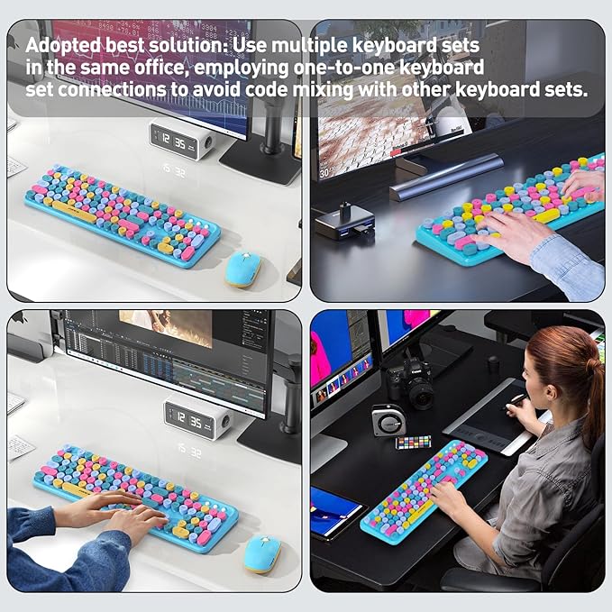 - 【Full-Size keyboard with Detachable Round Keycaps】The typewriter keyboard wireless has blue retro round keys and the silent click of the quiet mice will allow you to do your job without disturbing others. The mini mouse is with modern ergonomic design, Fixed DPI :1200. All circle buttons can be disassembled, put in water to clean.
