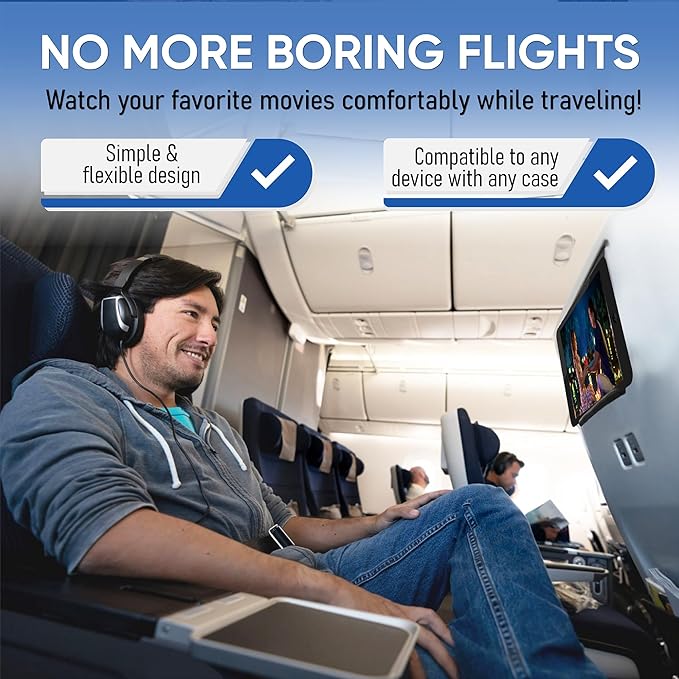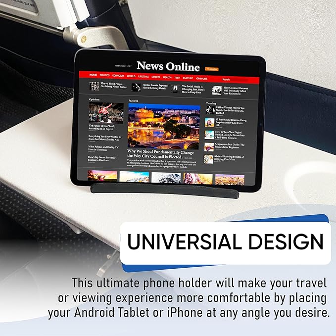Airplane Travel Essentials for Flying Flex Flap Cell Phone Holder & Flexible Tablet Stand for Desk, Bed, Treadmill, Home & in-Flight Airplane Travel Accessories - Travel Must Haves Cool Gadgets (XL)