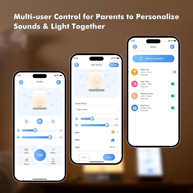 - [BABY REGISTRY MUST HAVES SOUND MACHINE TODDLER SLEEP TRAINER, AND BABY WHITE NOISE MACHINE SCHEDULE] - You can set up baby schedules for babies and children with the app. Baby schedule with light color, white noise, and start and end times. Evaife white noise machine automatically lights up bedtime, and the night lights are set with the toddler model. Sleep training light and white noise, the sound machine with clock and light suitable for adults and children could improve sleep quality.