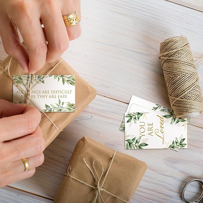 Jinei 300 Inspirational Affirmation Cards Positive Motivational Cards Small Mini Encouragement Quotes for Women Church End of the Year Teacher Gifts(Eucalyptus)