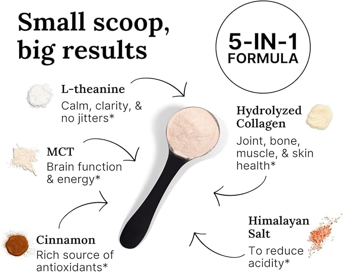 - Special Ingredients : Collagen, Himalayan Pink Salt, L-Theanine, Medium Chain Triglycerides Oil, Organic Cinnamon