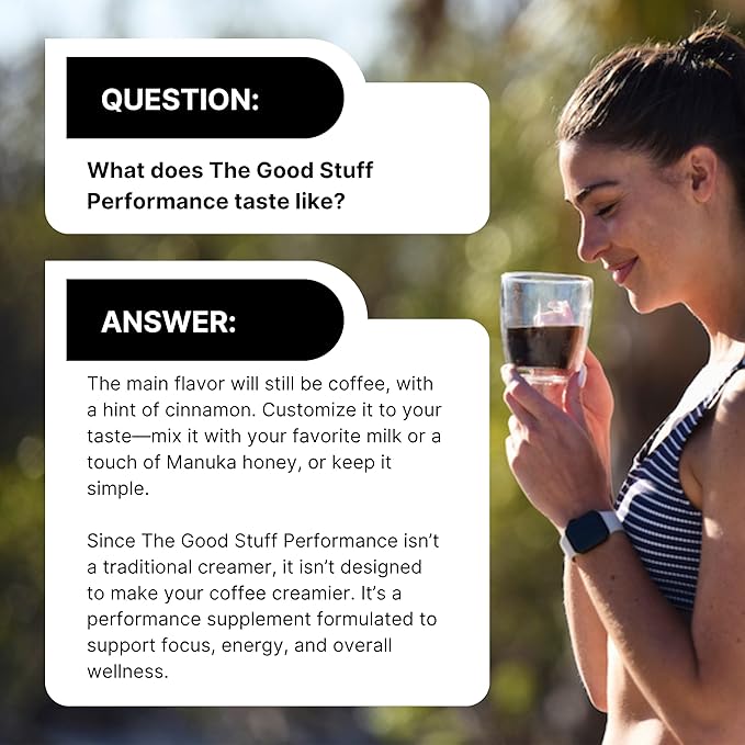 - SMOOTH, SUSTAINED ENERGY & STAMINA | Unlike sugary creamers, energy drinks, or stimulants, The Good Stuff works with the coffee you love to deliver steady energy that lasts. Powered by L-Theanine, a clinically studied amino acid, this coffee supplement supports a balanced mood and helps you stay sharp and productive — no jitters, no crash. Because better mornings make better days.