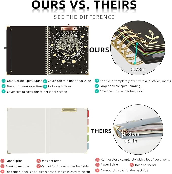 - Premium Material & Ideal Size - Our business portfolio folder is crafted by high-quality cardboard material. And the 0.78'' metal spiral is sturdy and not easily-broken, durable metal reinforced rounded edges are both aesthetically pleasing and effective against wear and tear. So as the poly binder divider(8.5 x 11'') that is water-resistant and anti-tearing. The expanded size is 20.05 x 13.1", and the folded size is 12.02 x 13.1", making it ideal for A4/Letter and a perfect choice for all occasions