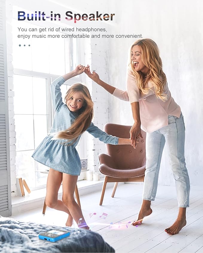 - 💎【Built-in HD Speaker】Our MP3 player also comes with built-in HD speakers, which eliminates the need for earphones and the pain that often comes with wearing them. When you want to enjoy music quietly by yourself, you can also plug in the headphones and enjoy it.