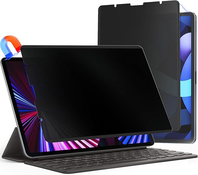 - 【PRIVACY ON THE GO】Easily add full-screen privacy to your iPad with the removable and reusable magnetic privacy screen protector. Safe and convenient to store when not in use with the included plastic folder, making travel and remote work safe and secure when you need privacy the most. It is always washable, do not worry about getting smudged.