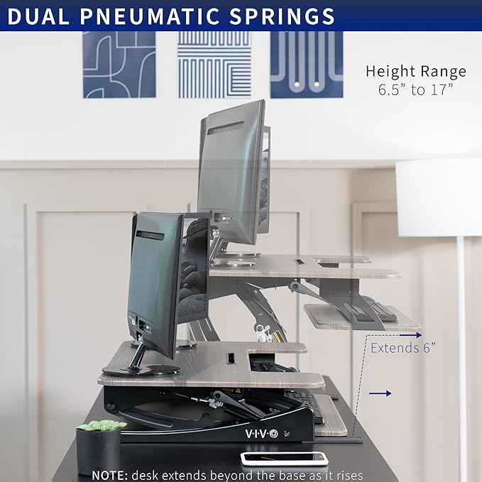 - Create Instant Active Standing: VIVO’s desk riser provides on-demand standing throughout the day for the freedom to get out of your chair and relieve muscle tension, reduce stress, and increase productivity --Patented--