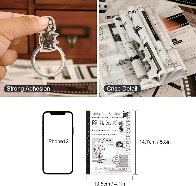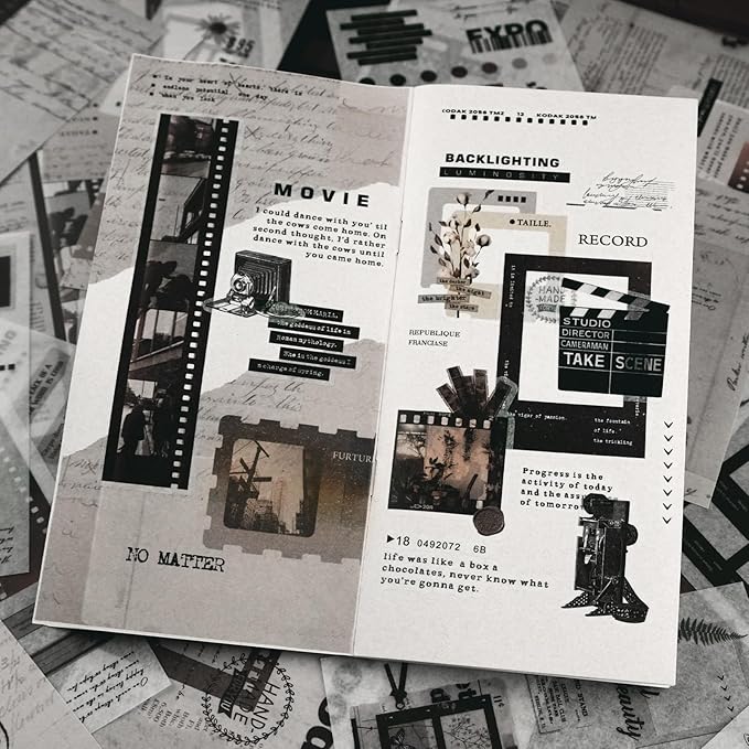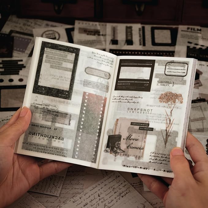 - 3. VINTAGE SCRAPBOOK STICKER KIT - Our compact junk journal sticker book features beautiful film, camera and manuscript in vintage designs. Vivid patterns and crisp details. Embellish your notebooks with a variety of film illustrations, frames, plants, etc.