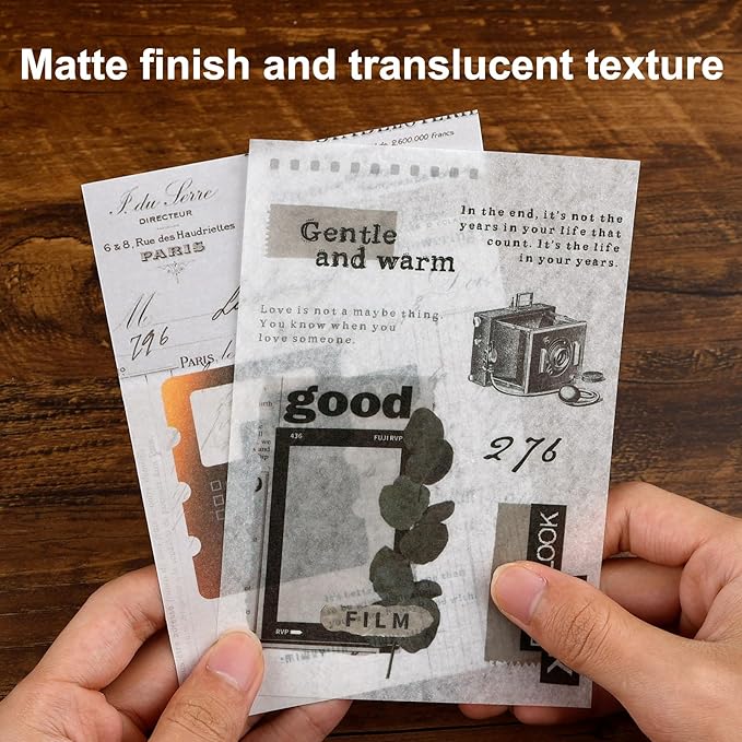 - 2. MATERIAL - These vintage journaling stickers are made of washi paper with flat finish and translucent texture. They are thin. If needed, they can be written on. They hold their stick well but are very easy to peel and re-stick without leaving any residue.