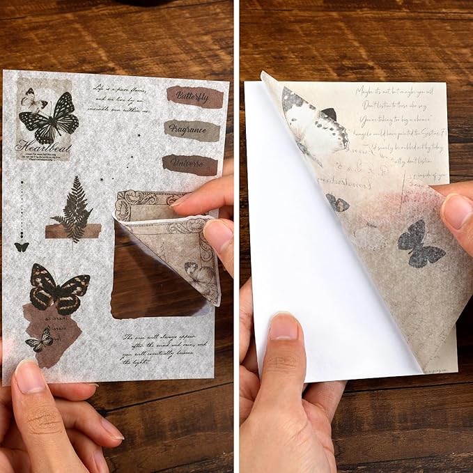 - 2. MATERIAL - These vintage journaling stickers are made of washi paper with flat finish and translucent texture. They are thin. If needed, they can be written on. They hold their stick well but are very easy to peel and re-stick without leaving any residue.