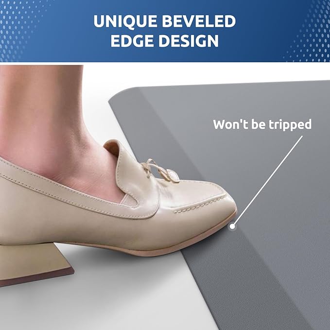 - Safety Design: the diamond-shaped design on the bottom of anti fatigue mats keeps the mat in place and prevents slippage; the bevel edge reduces the risk of tripping on the mat