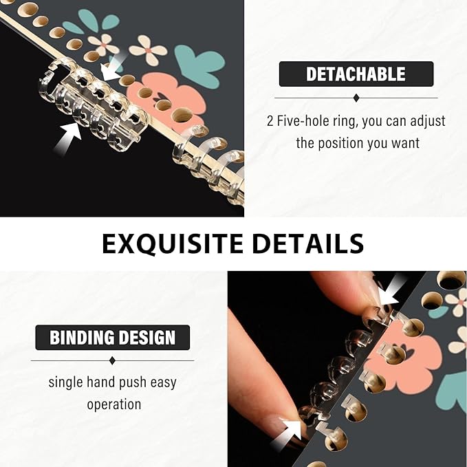 - Detachable Side Rings: Easy to operate with one hand, detachable, and adjust the position at will. The number of pages can also be increased or decreased