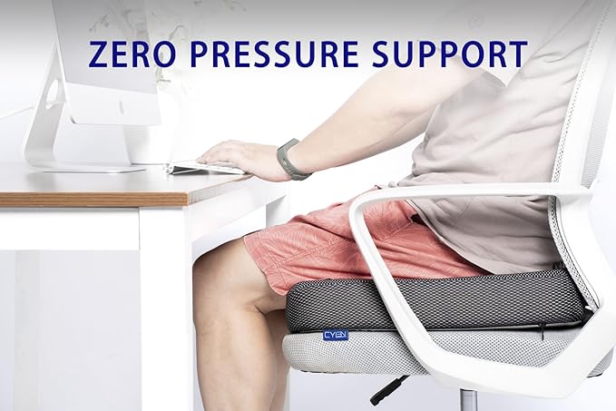 - Excellent Comfort-Strategically designed coccyx pressure relief technology on your tailbone so even those with sacrum sensitivities can sit for long periods without discomfort. The desk chair cushion distributes weight evenly and provides support where you need it most