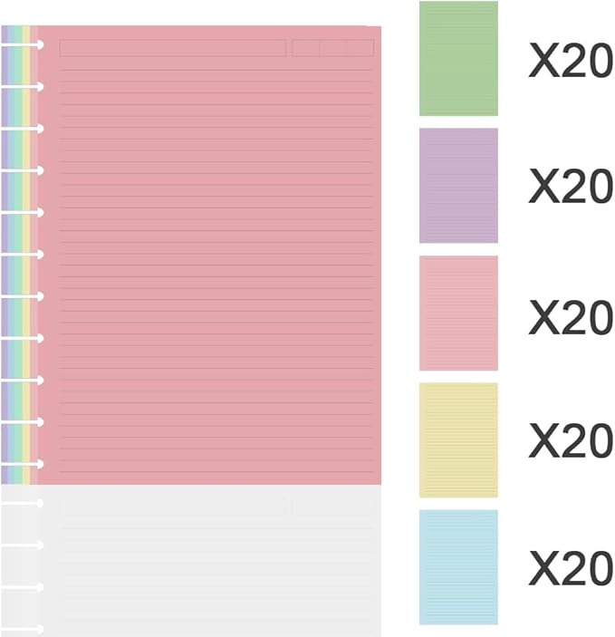 - LINED REFILL PAPER - 8.5'' x 11'' planner refill paper, 100 sheets/200 pages colorful paper in total, 5 Colors(20 Sheets/Color), 7 mm ruled. Conveniently record your work and study