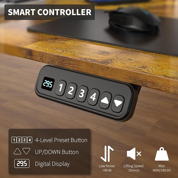 - ✨Quiet and Stable Standing Desk: The electric standing desk has smooth lifting without shaking, and a complete overload protection mechanism. Intelligent chip control, quiet, no noise.