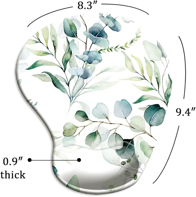 DOOKE Ergonomic Mouse Pad with Wrist Support and Coaster,Mouse Pads with Non-Slip PU Base for Home Office Working Studying Easy Typing & Pain Relief Eucalyptus Leaves