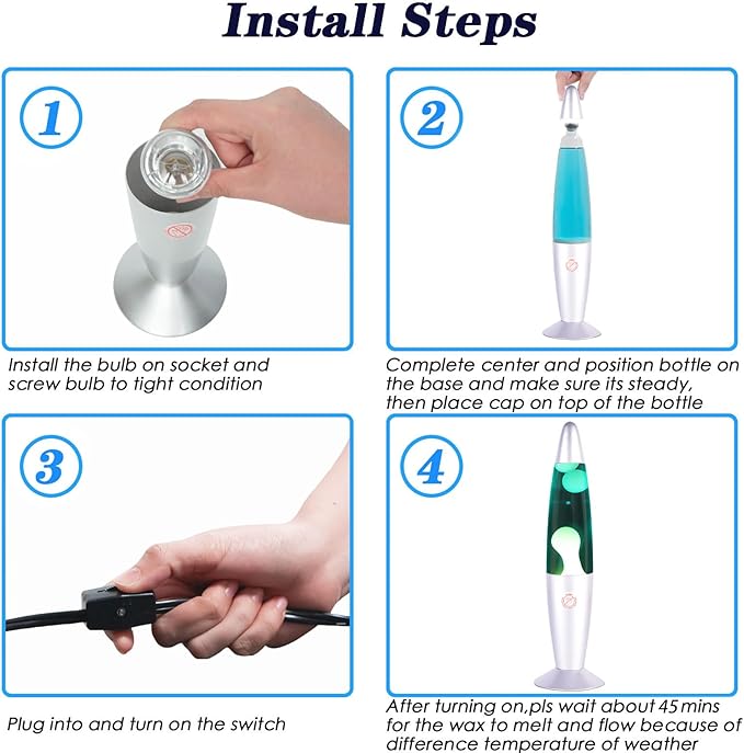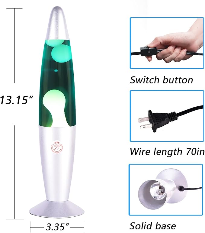 - 【Premium Quality Motion lamp】:This night light's sliver base and cap is made of aluminium alloy, that is been reinforced to prevent it deformed easily by transportation and the thick glass bottle with upgraded seal technology guarantee that liquid break easily.