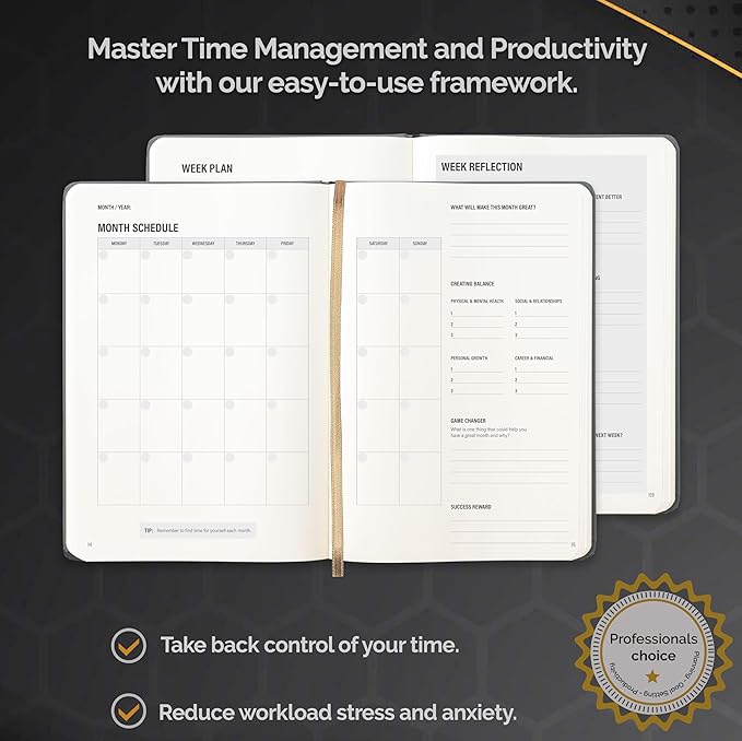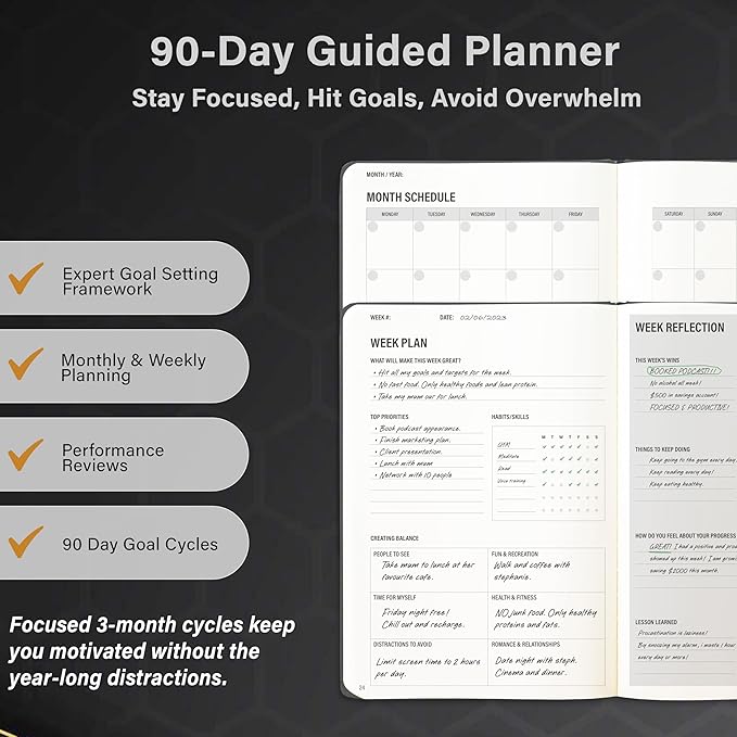 - ✔ Shape Your Ideal Week – Stay organized and in control by setting clear weekly priorities while making time for balance, wellness, and self-care. Track habits, monitor progress, and see positive changes take shape over manageable 90-day cycles.