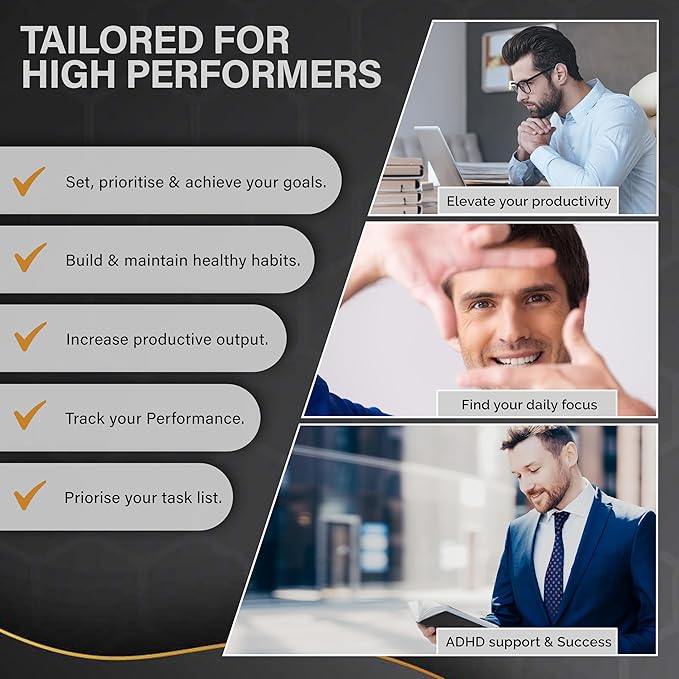 - ✔ Designed for Focus & Intention – Created for high achievers and ADHD/Neurodivergent minds, this planner offers a clear, guided roadmap so every day has purpose. End each evening with reflection prompts to celebrate wins, build gratitude, and reinforce progress.