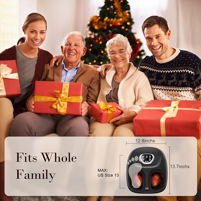 - Fast Heating & Safe Use: The foot massager with heat delivers soothing warmth to cold, stiff feet, making it an excellent foot heater or foot warmer. It helps ease foot fatigue and soreness, promotes circulation, and improves sleep quality. Adjustable heat settings (113–131°F) and built-in overheating protection with auto shut-off ensure a safe and worry-free massage experience.