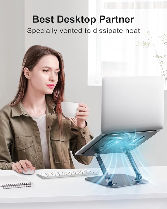 - Ergonomic Design: This laptop stand is helpful for relieve neck and shoulder pain by elevating the laptop equal to your eye level. The silver stand can meet the work and study needs of people of different heights