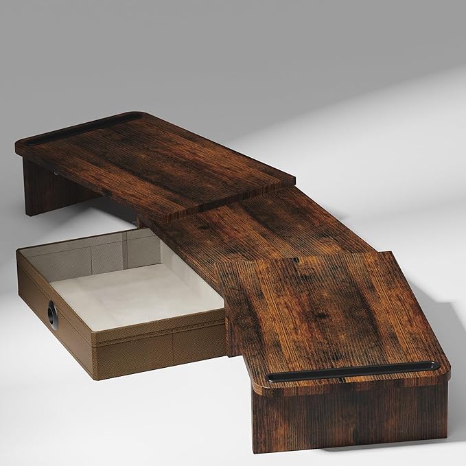 Dual Monitor Stand Riser with Drawer-Adjustable Length and Angle, Monitor Stand Riser for 2 Monitors, Desktop Organizer Stand for Computer/Laptop/PC/Printer (Rust Brown)