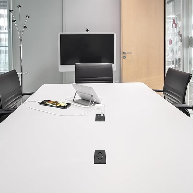 - Recessed Outlet Strip with Flat Plug: The 45 degree flat plug saves space and provides space for other plugs to share the socket Ideal for tight spaces such as behind furniture. It has all the power a person would reasonably need at their desk or work station, create less clutter and have a more organized desk area, in use and that it is not taking up floor space or counter space.