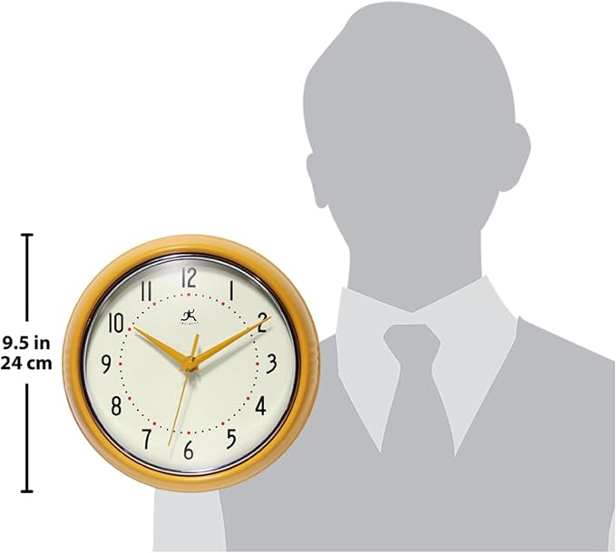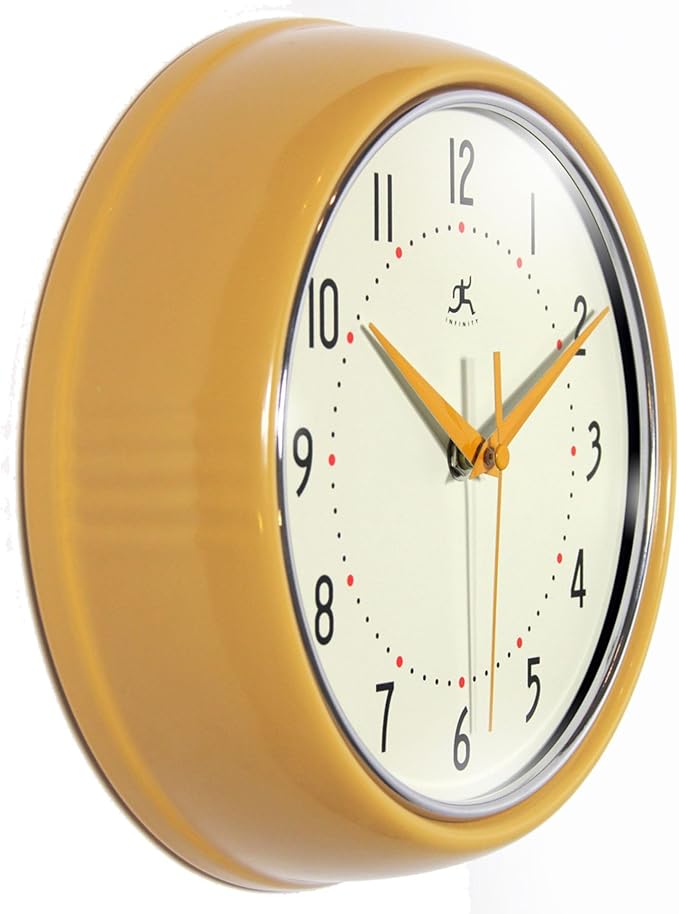 Infinity Instruments LTD. Retro 15 inch Mid Century Modern Kitchen Diner Wall Clock Quartz Movement Retro Wall Clock Decorative (Saffron Yellow)
