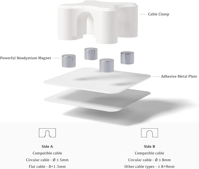 - Strong Magnetic Hold - Each organizer has high-strength neodymium magnets embedded in its four feet, ensuring a secure hold and preventing cable movement.