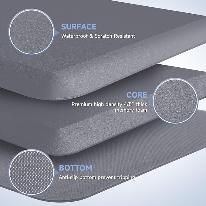 - 【Thicker Mat】The StepRite kitchen mat is made of 4/5 inch thick memory foam for better support and comfort when standing. Measured as 17*28 inches. Suitable for kitchen, office, laundry room or any high-traffic area