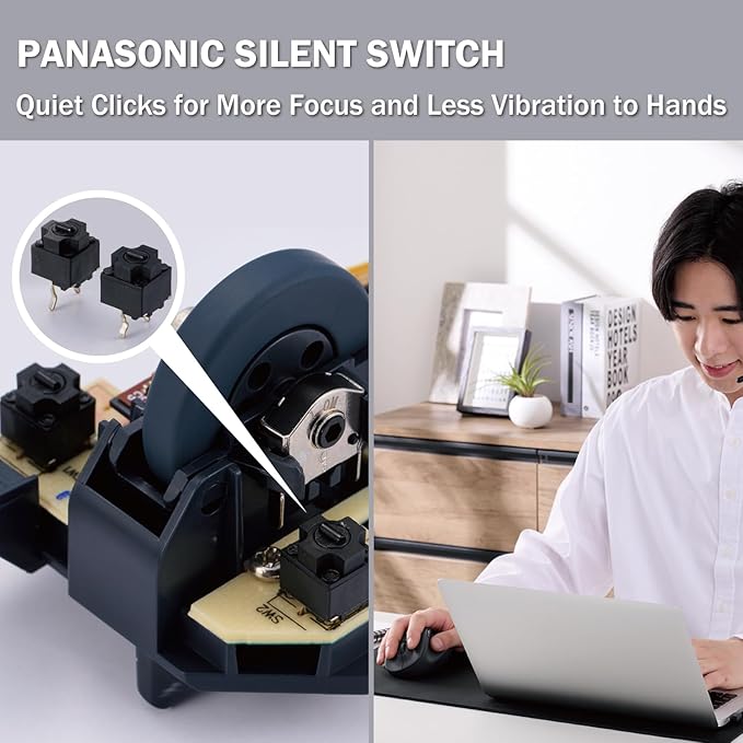 - SILENT CLICK SWITCH - A Silent switch does not make a ticking sound. You can use mouse during the meeting, early in the morning and night work, even when you work at home, without worrying about the sounds around you.