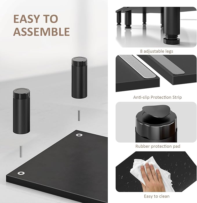 - EASY TO ASSEMBLE: In just two minutes, you can get a monitor riser that makes your work more comfortable and efficient. Just use screws to assemble the base frame together and attach the 2 side frames to the middle section. Then adjust to the angle you need