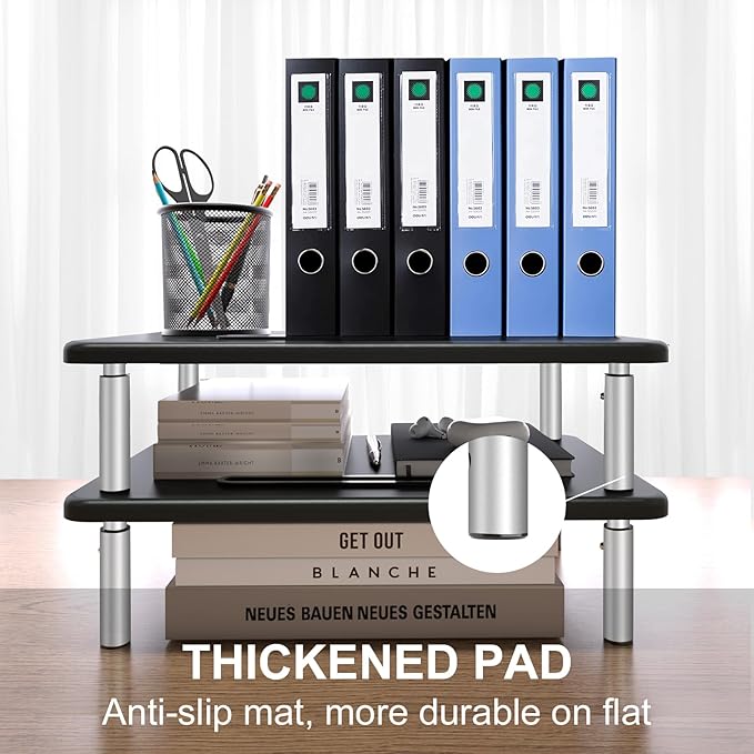 - SIMPLE ASSEMBLY - Our monitor laptop stand riser comes with 1 platform and 4 legs, all you need to do is just screw the 4 legs into the platform. No tools required. One minute is enough.