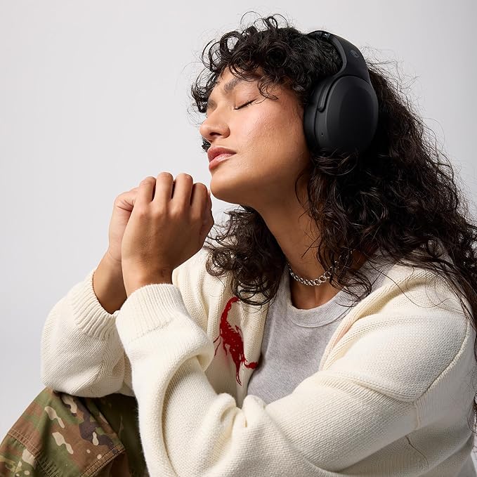 Skullcandy Crusher Evo Wireless Bluetooth Headphones with Multi-Sensory Bass and Charging Cable, Noise Isolating Over-Ear Fit, Up to 40 Hours Battery, Microphone for iPhone Android - True Black