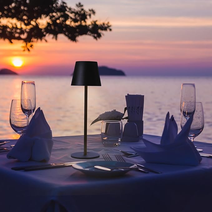 - 【Minimalist design】Elegant and exquisite appearance, simple outline, classic black (white) design, Anti-Slip soft silicone at the bottom of this battery powered lamp can prevent slipping or accidental tipping. Warm light, give you a warm atmosphere, suitable for bar, bedroom, dining room and outdoor.