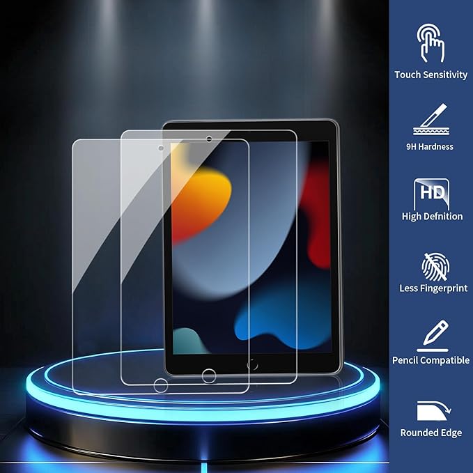 - Ultra-High Transparency & Clarity: With over 99.99% light transmittance, the optical-grade tempered glass maintains the iPad 10.2-inch 9th/8th/7th gen original HD display quality, delivering a crystal-clear, vibrant, and distortion-free viewing experience for work, entertainment, and creativity
