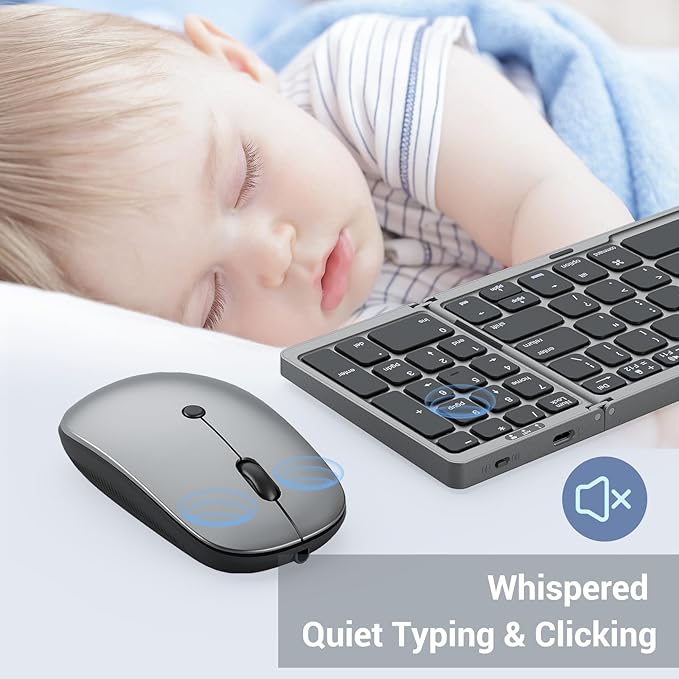 Foldable Keyboard and Mouse for Laptop, Travel Bluetooth Folding Keyboard Mouse with Portable Case, Rechargeable Keyboard for Business, 2.4G Wireless & Bluetooth, for iPad Tablets Laptop iOS Android