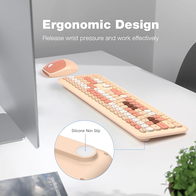 KNOWSQT Wireless Keyboard and Mouse Combo, Pale Milktea Full-Sized 2.4G Silent Keycap Colorful Keyboards, USB Dongle Plug Play, for Laptop, Windows, PC, Computer, Desktop