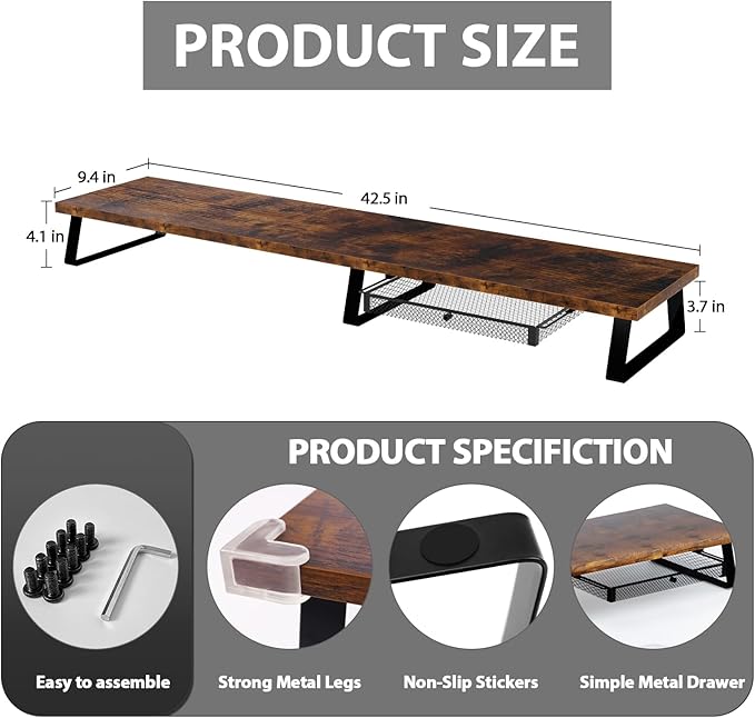 - Monitor Stand with Drawer: Upgrade your workspace with our computer monitor riser featuring practical slide-out drawers. With a spacious 12.2 x 9 x 1.18 inches of storage, it’s perfect for keeping essentials like notebooks, writing utensils, and tablets organized and within reach. Improve organization while enhancing accessibility for all your desk essentials