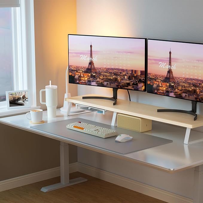 - Monitor Stand with Drawer: Upgrade your workspace with our computer monitor riser featuring practical slide-out drawers. With a spacious 12.2 x 9 x 1.18 inches of storage, it’s perfect for keeping essentials like notebooks, writing utensils, and tablets organized and within reach. Improve organization while enhancing accessibility for all your desk essentials